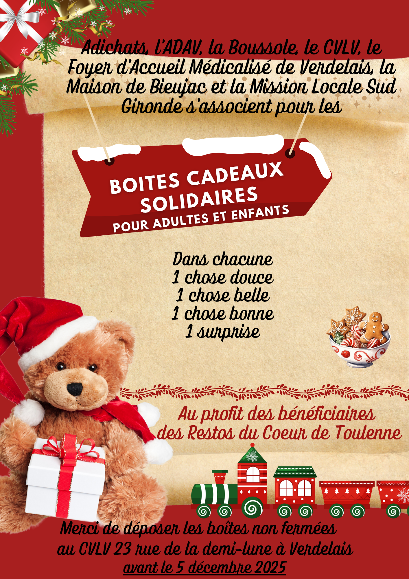 Le CVLV réalise une collecte de boîtes solidaires pour apporter chaleur et réconfort à des personnes bénéficiaires des Restos du Cœur. (la remise se fera la semaine du 15/12).