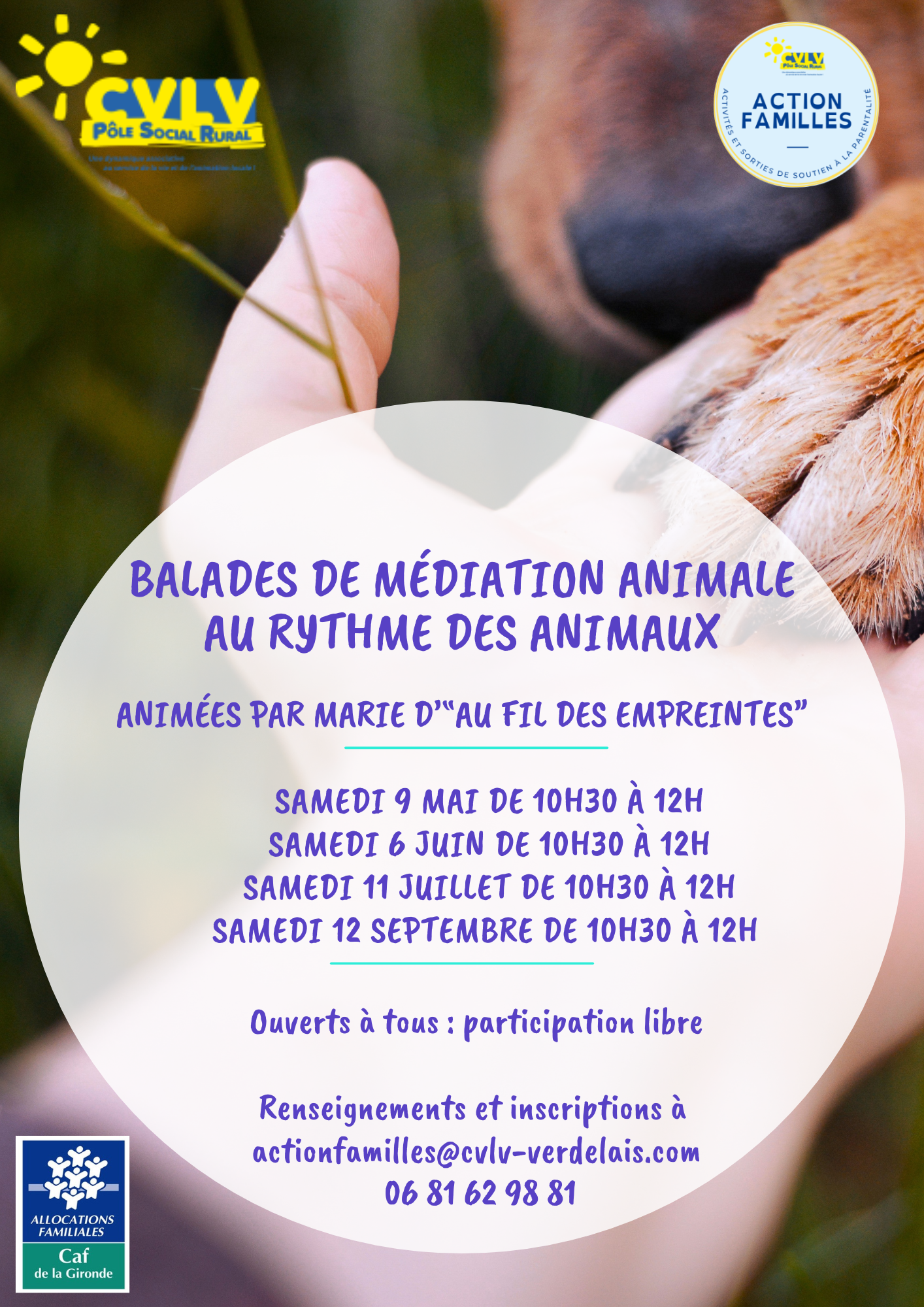 L'Action Familles du CVLV, avec le soutien de la CAF, vous propose 4 nouvelles balades de médiation par l’animal, occasions de moments conviviaux et originaux à partager en famille.